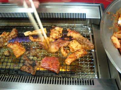 ![]() JR兵庫とJR新長田の間にあるホルモン・焼肉の「映ちゃん」に行った。 甘口・中辛・辛口のタレを最初から漬け込んだ肉・ホルモンをコンロで焼くタレをつけずに食べるシステムとなっている。以前きたときよりなんか店内が綺麗になったような気が。。。 [サイト内映ちゃん検索] ![]() つきだしナムルがやってきた。 ![]() 生ビール頼んで ![]() 肉は多分。。。!?中辛の大をたのんだ?!と思う?! ![]() テッチャン、ミノ、センマイ、バラ肉などがミックスされた肉が唐辛子とニンニクが効いたタレに漬け込まれやってくる。付けダレはなしです。 ![]() お肉たんのうしました。ご馳走様でした。隣りのテーブルのお子達とお友達になりました。時間が20:00で終わってしまうので注意です。 ------------------------------------------------------------------- 焼肉・ホルモン映ちゃん 神戸市長田区梅ケ香町1-3-19 078-671-4627 営業時間: 12:00AM〜8:00PM 定休日: 月休 Comment